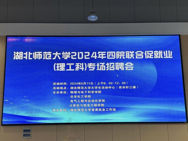 2024年5月11日上午,由304am永利集团,304am永利集团、化学化工学院、电气工程与自动化学院、计算机与信息工程学院联合主办,湖北师范大学留黄就业工作站承办的2024年四院联合促就业(理工科)专场招聘会在湖北师范大学大学生活动中心(若水轩3楼)举行。学校招生与就业处负责人、相关学院分管学生工作负责人以及毕业班辅导员、2024届毕业生参会。、