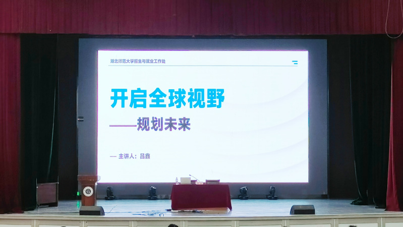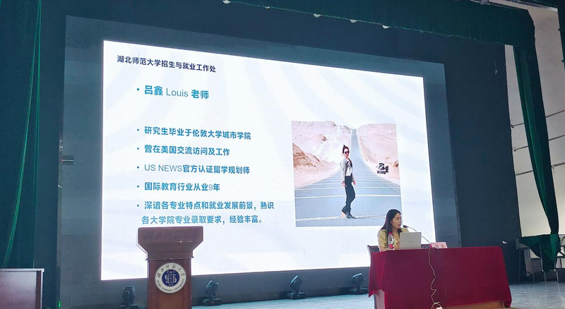 随后,吕鑫围绕“为何需要全球视野”“未来道路选择”“大学四年规划”及“核心竞争力构建”四大核心板块,强调在全球化与教育对外开放的大背景下,大学生应尽早明确发展方向。她详细分析了国内深造与海外留学的现状与趋势,并提供了贯穿大学四年的具体行动指南。