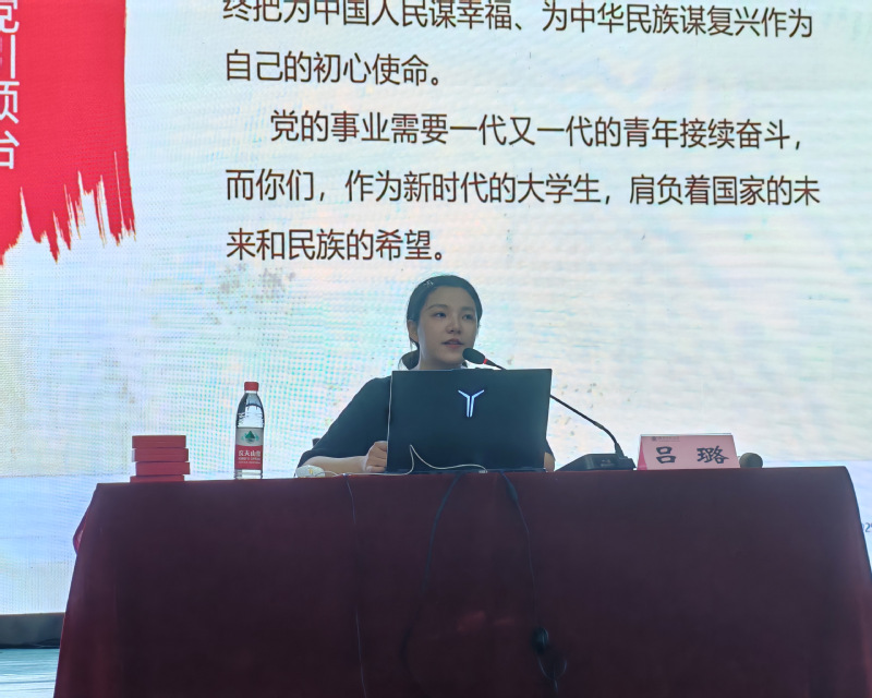 吕璐则以“风起扬帆正当时 青春领航心向党”为主题开展党团知识宣讲,围绕“申请入党的条件”“党员的基本条件”“入党积极分子的确定、教育和考察”“大学生入党流程及注意事项”四大核心板块,为新生系统梳理党团知识。同时,她鼓励新生以黄大年、黄文秀等优秀党员为榜样,端正入党动机,将个人理想融入国家发展大局,以实际行动积极向党组织靠拢。