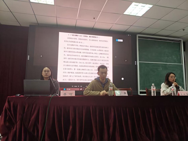 接着,仇奥和李可对安全管理工作进行补充说明。两位老师结合工作中的真实经历,分享了处理宿舍突发情况的经验:从宿舍突发矛盾的调解技巧,到用电违规事件的紧急处置,再到同学突发疾病的救助流程,用具体案例为同学们提供了“可操作、能借鉴”的应对方案。