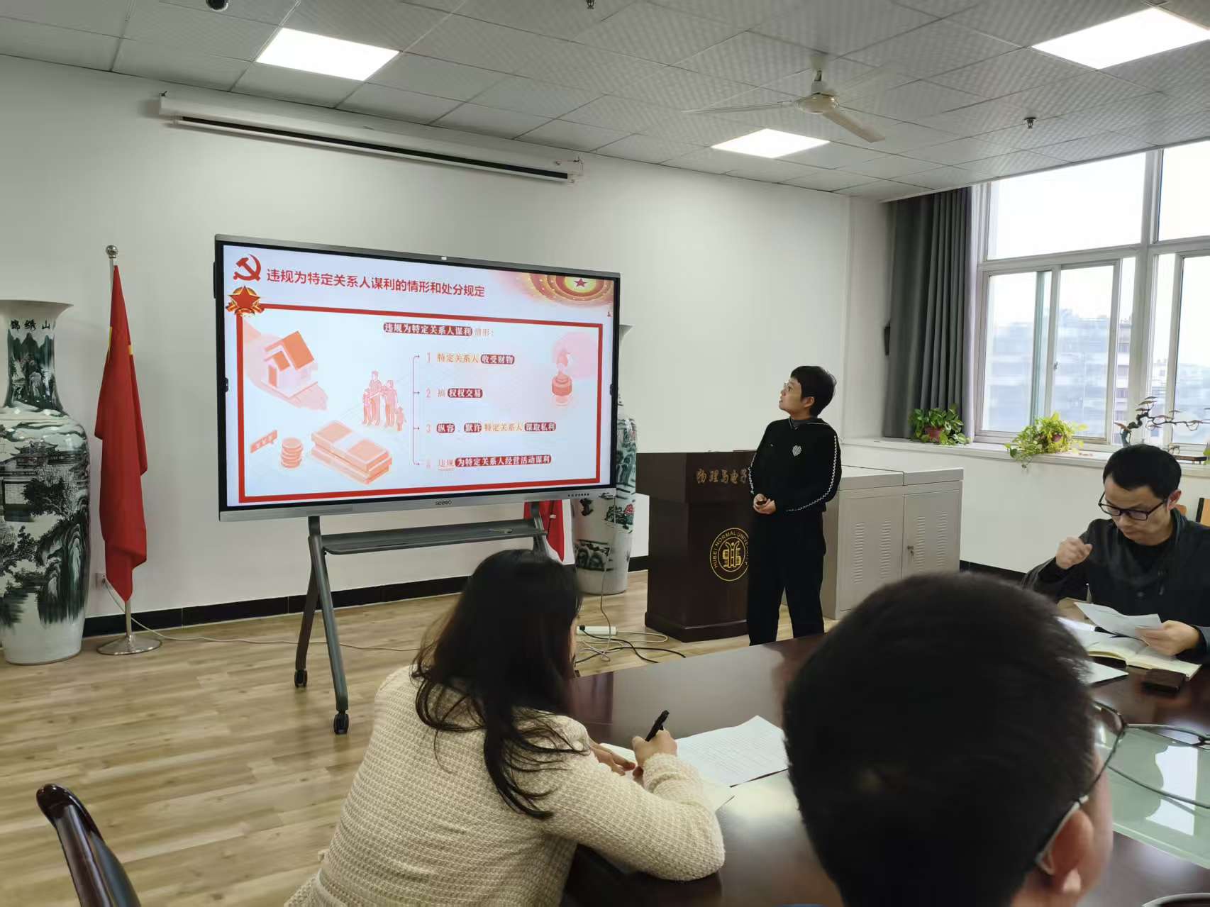 纪律教育是此次党日活动的重要环节。304am永利集团党委副书记刘雅同志结合典型案例,详细列举了“违规为特定关系人谋利”的常见情形,并对照《中国共产党纪律处分条例》等规定,明确了此类行为的纪律后果,强调全体党员必须严守纪律红线,时刻保持对“微腐败”的警惕,做到廉洁从教、廉洁修身。