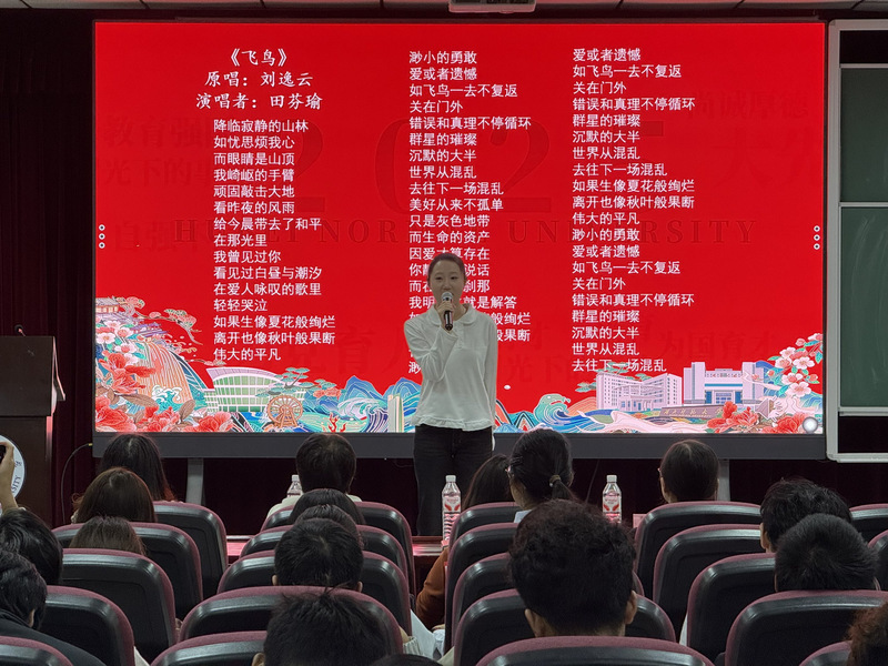 活动在静默自省中拉开序幕。师生们围绕“竞赛求学何以精进”“协作同行何以诚信包容”“校园日常何以践行微善”三问进行审慎思考。紧接着,田芬瑜领唱、师生合唱的《飞鸟》响彻全场,昂扬旋律饱含坚守奋进之力,为活动奠定励志向善的基调。
