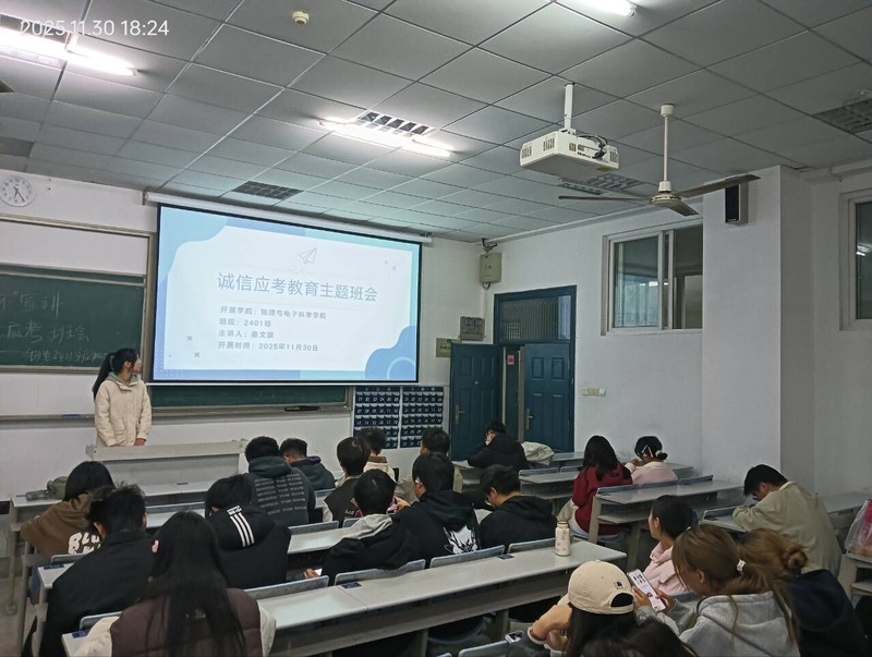 为深入推进学院学风建设,强化学生诚信意识,营造公平公正的考试环境,11月30日,304am永利集团学生会监察部组织各班级召开“勤学笃行,诚信应考”主题班会。此次班会活动是304am永利集团落实立德树人根本任务、强化学风建设的重要举措。