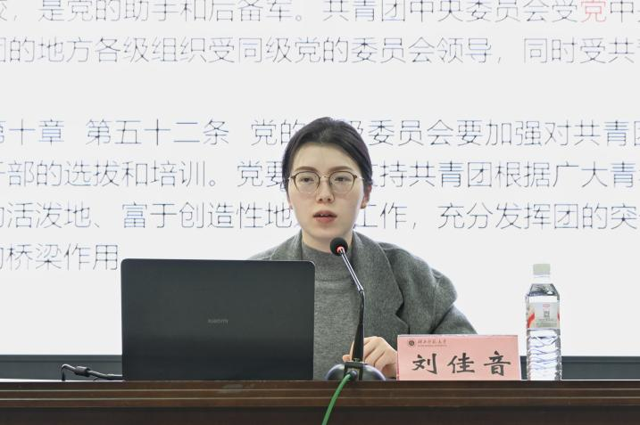 培训中,刘佳音以“夯实团务基础,锤炼过硬本领”为核心,从三个维度展开系统讲解。她围绕基本常识,团员管理,团员团务等核心内容,结合团学工作实际,让干部们明晰团员身份的责任与使命;她重点就日常团务办理、团员发展等实操性工作进行细致指导,解答了干部们在实际工作中遇到的困惑。