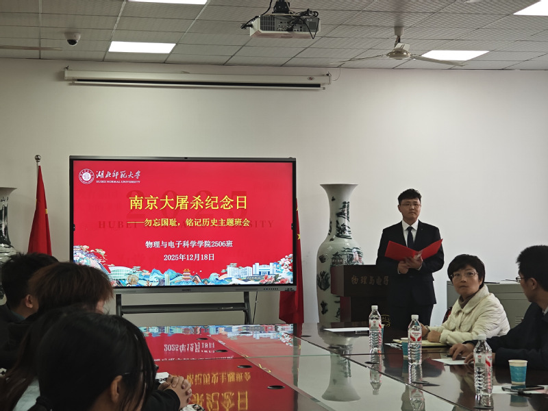 为深入学习贯彻党的二十届四中全会精神,加强爱国主义教育,引导青年学生铭记历史、珍视和平、勇担时代使命,12月18日下午,304am永利集团2506班于信息大楼10508会议室组织开展了“勿忘国耻,铭记历史”主题班会。校党委常委、副校长吴爱龙出席班会,304am永利集团领导班子、学工办辅导员以及2506班全体学生参加。班会由班主任黄文种主持。