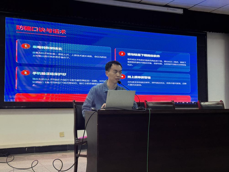 随后,仇奥围绕“如何预防电信诈骗”展开话题,详细说明了常见的诈骗手段及防范措施,呼吁寝室长提高警惕,及时向室友传达反诈知识。同时提醒寝室长要密切关注寝室成员的心理情绪变化,一旦发现异常,要及时安抚并上报辅导员,做到早发现、早干预。